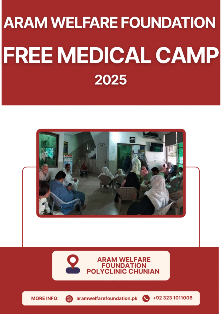 Free Medical Camp Organized at Aram Welfare Foundation Polyclinic, Chunian On 8th October 2025, Aram…